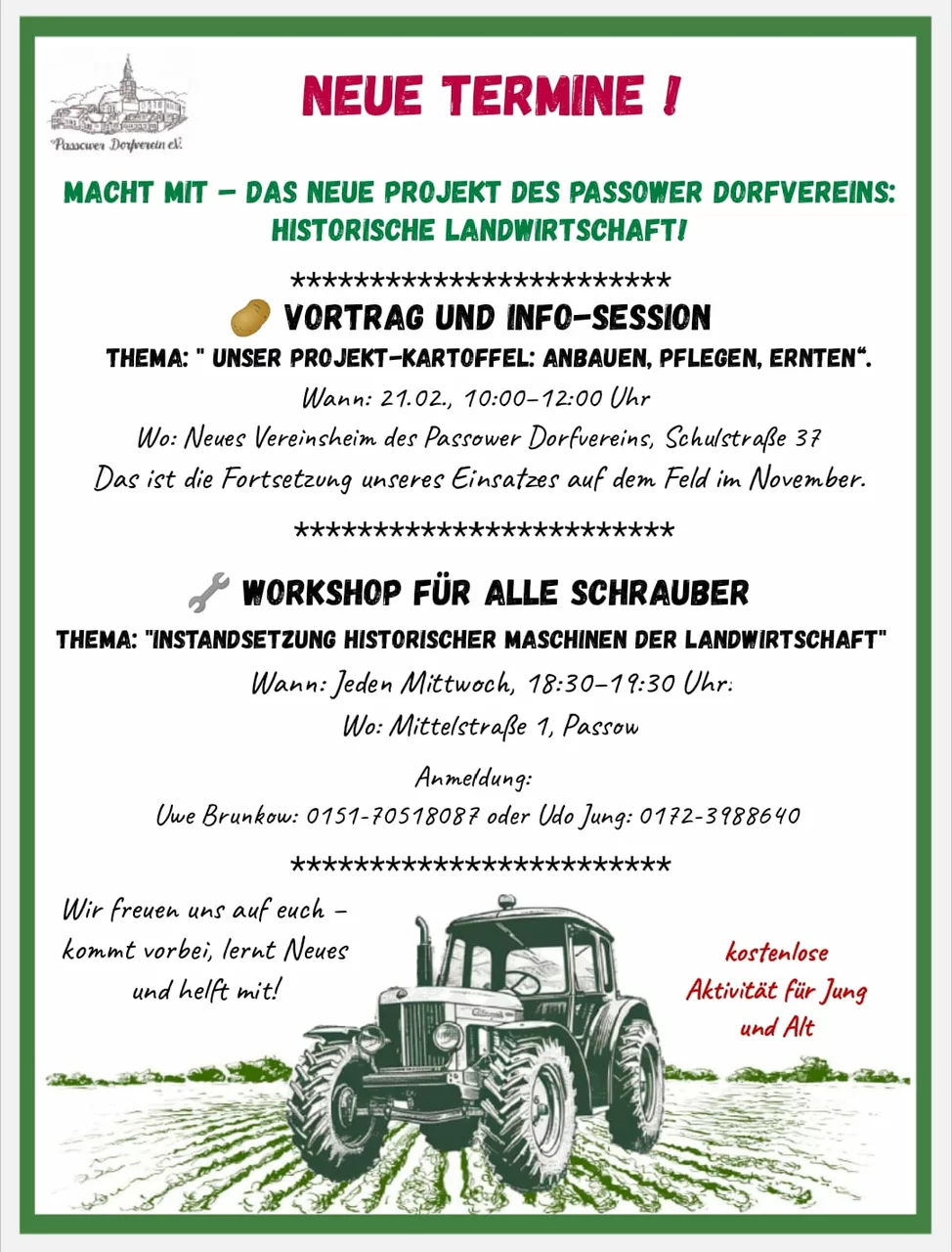 Veranstaltungen 2026 für Passow/Wendemark (Änderungen vorbehalten)
